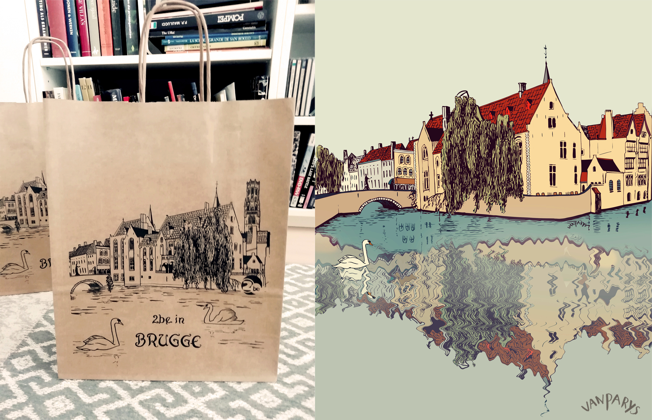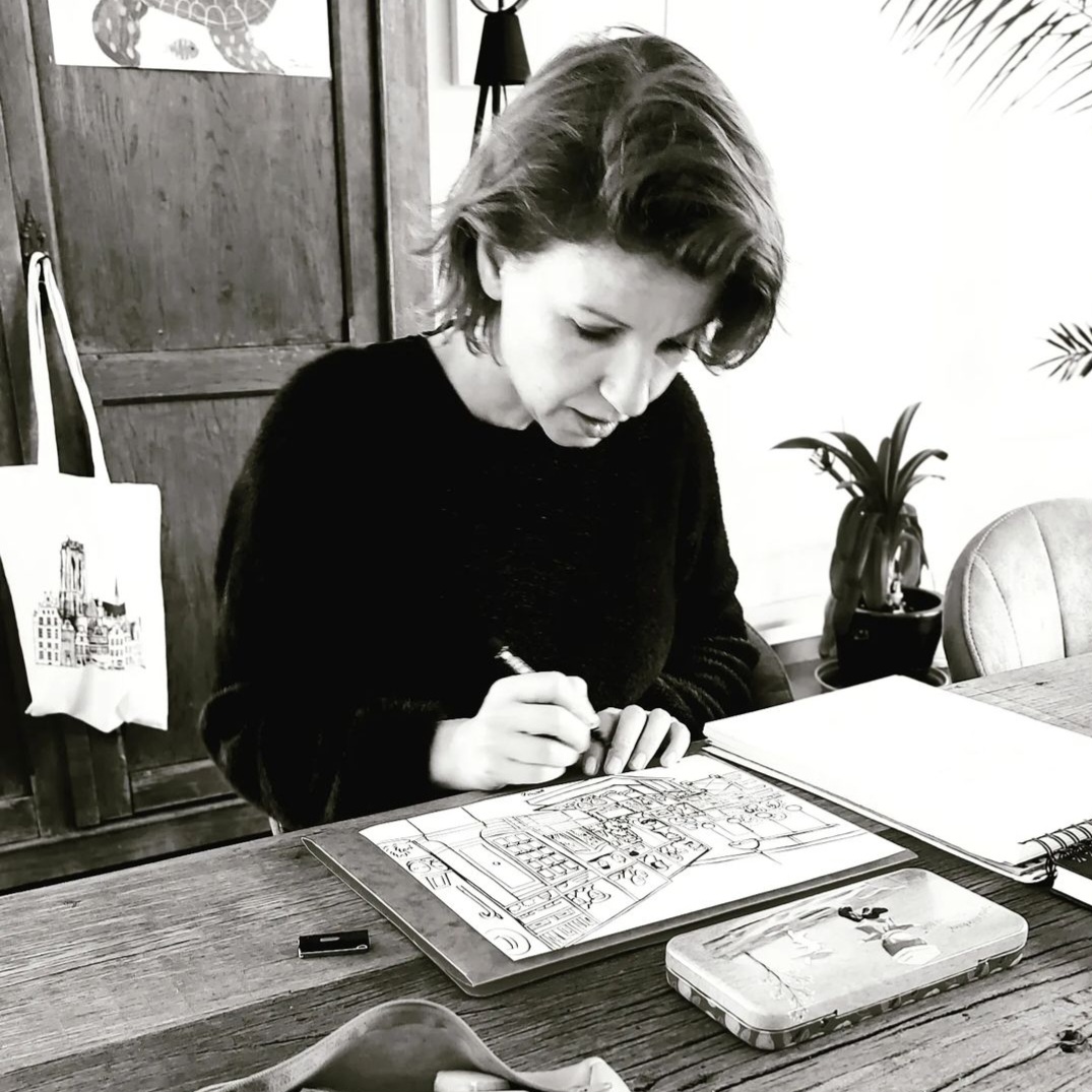 Staske is een project van mijn zus Sofie en mezelf. We laten mijn tekeningen van herkenbare stadszichten drukken op heel wat originele producten