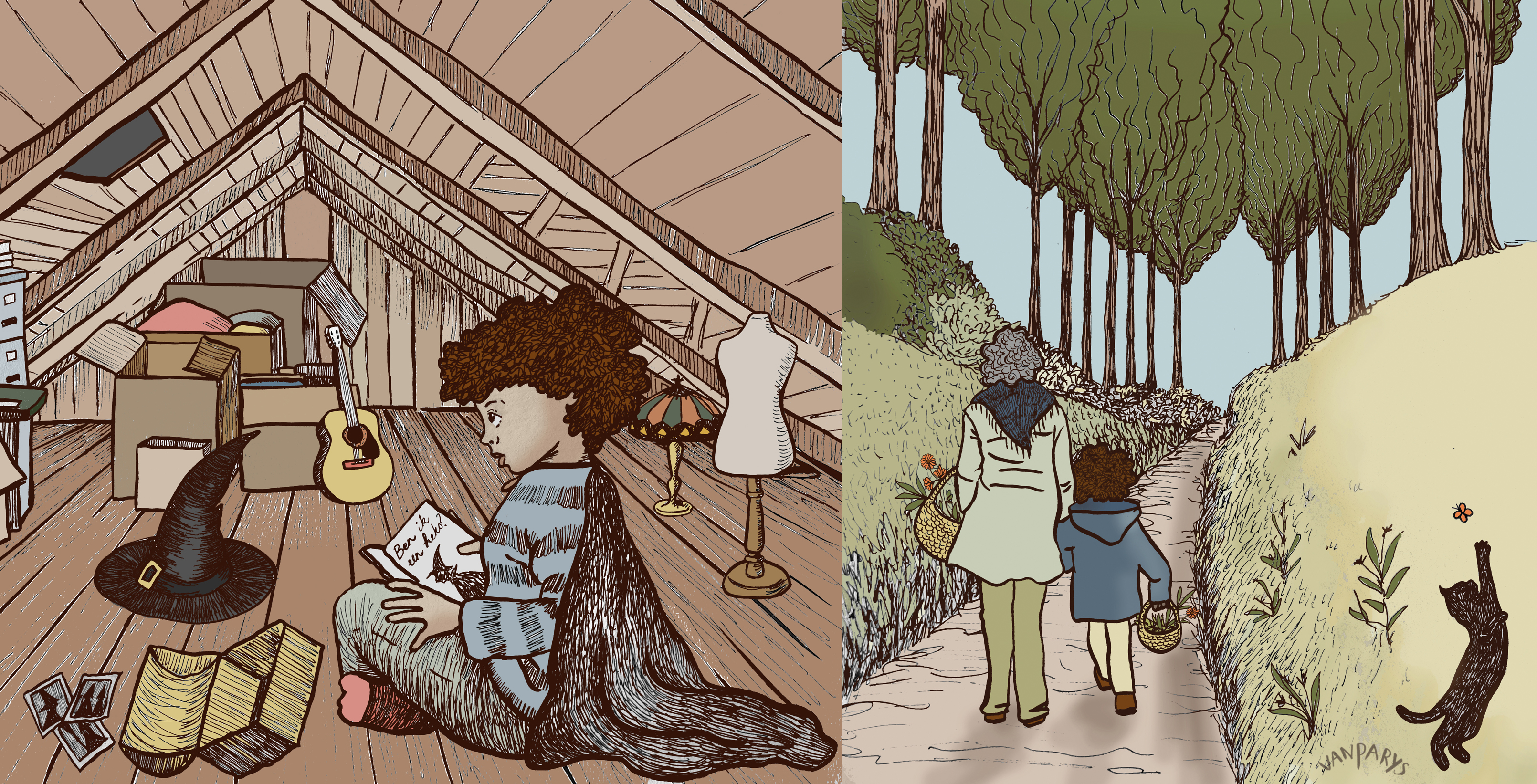 Alle illustraties zijn handgetekend, waardoor ze een warme, zachte uitstraling hebben