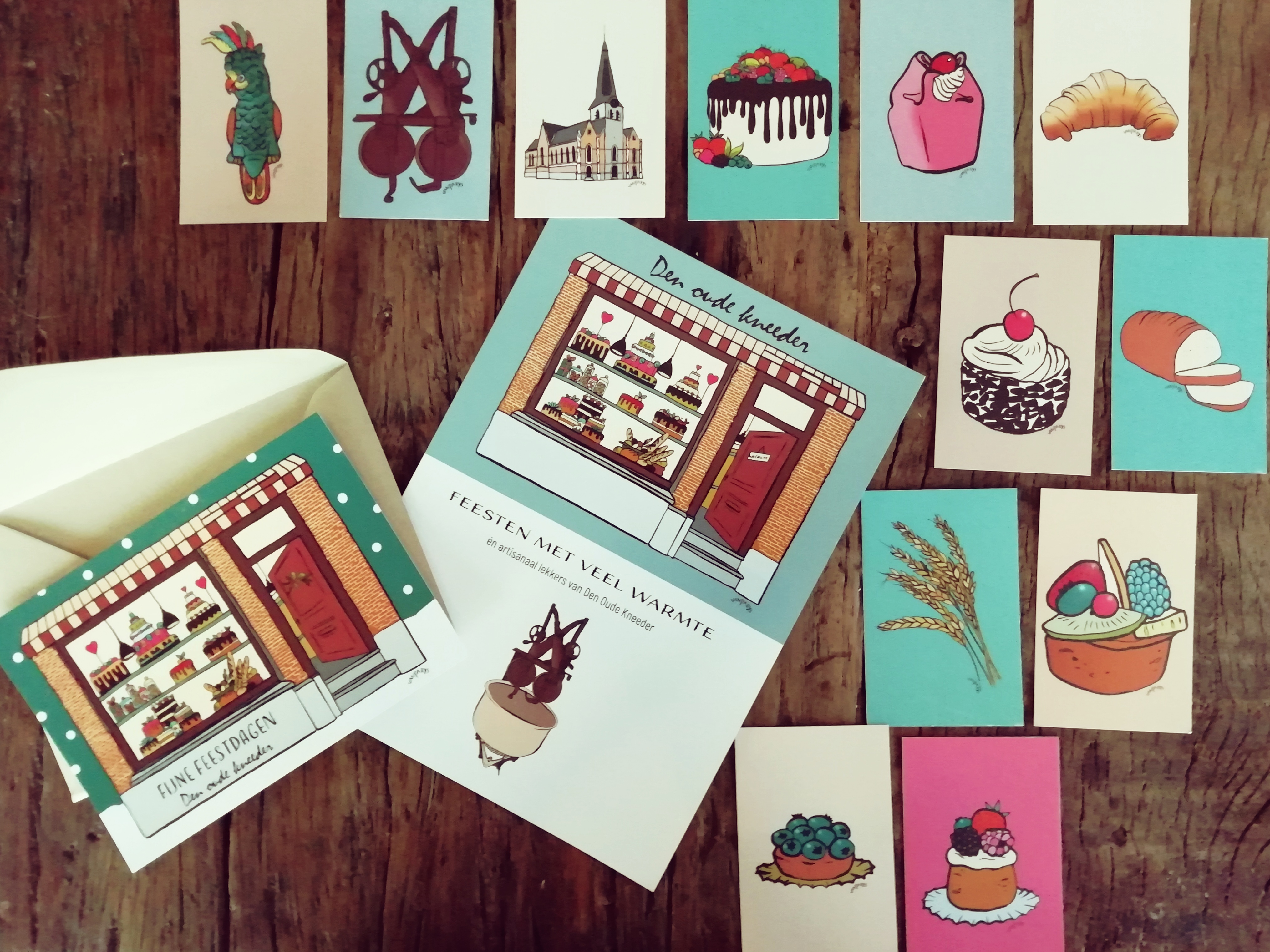 Een liefdevol eindejaarsgeschenk voor de klanten, dat waren deze kaartjes van warme bakker Den Oude Kneeder.