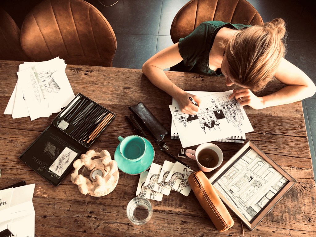 In hoofdberoep ben ik psycholoog, in bijberoep werk ik sinds 2018 als freelance illustrator, tekenaar en ontwerper. Ik specialiseer me vooral in psychosociale illustraties. Sinds 2019 heb ik samen met mijn zus Sofie een eigen productlijn met stadstekeningen, genaamd Staske. Je vindt onze producten in de webshop of via een van de verkooppunten in de stad.